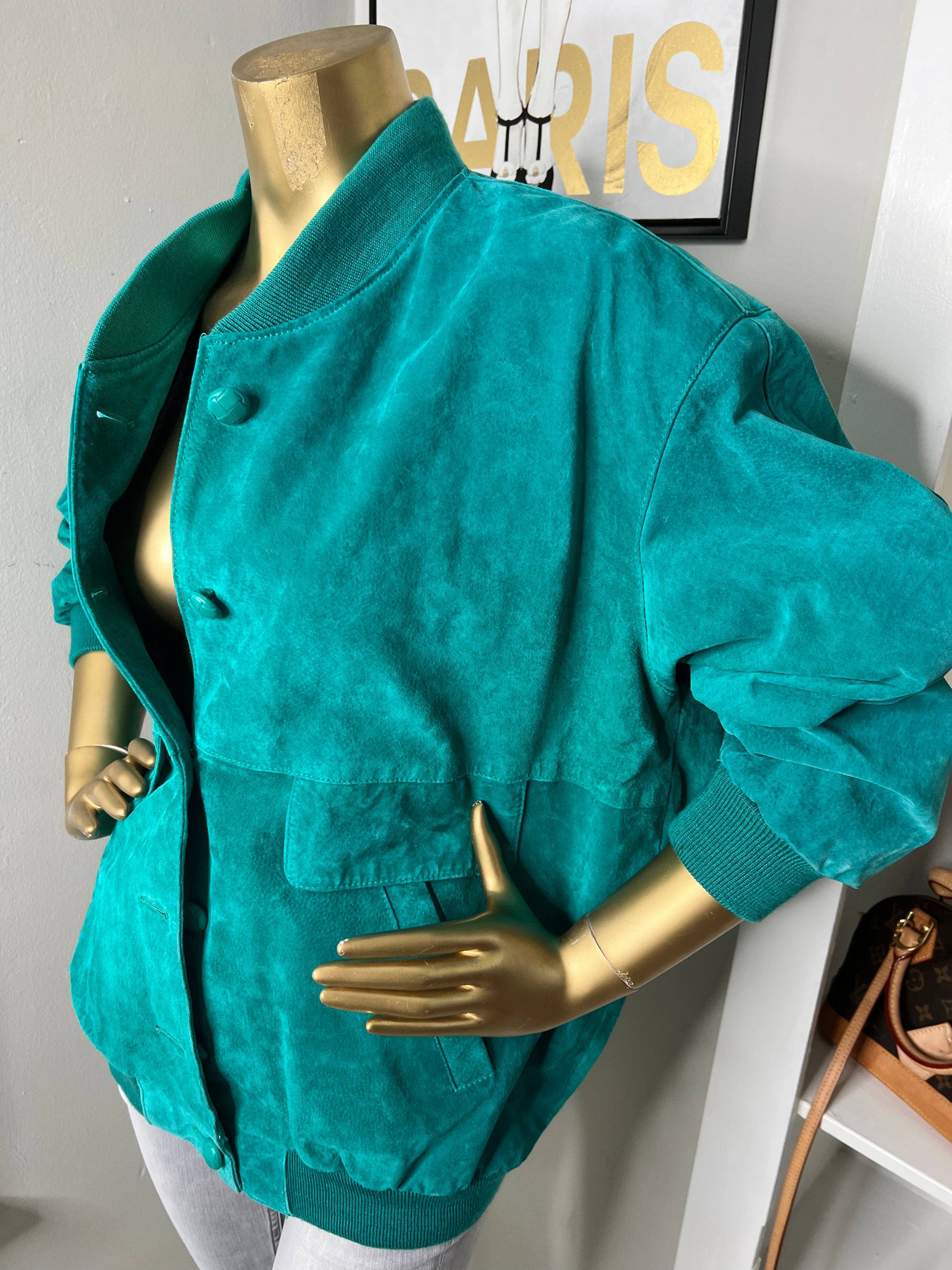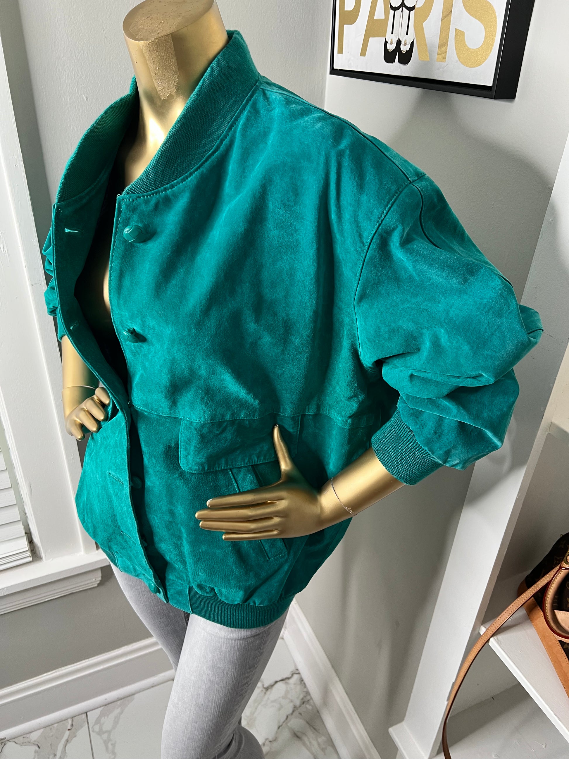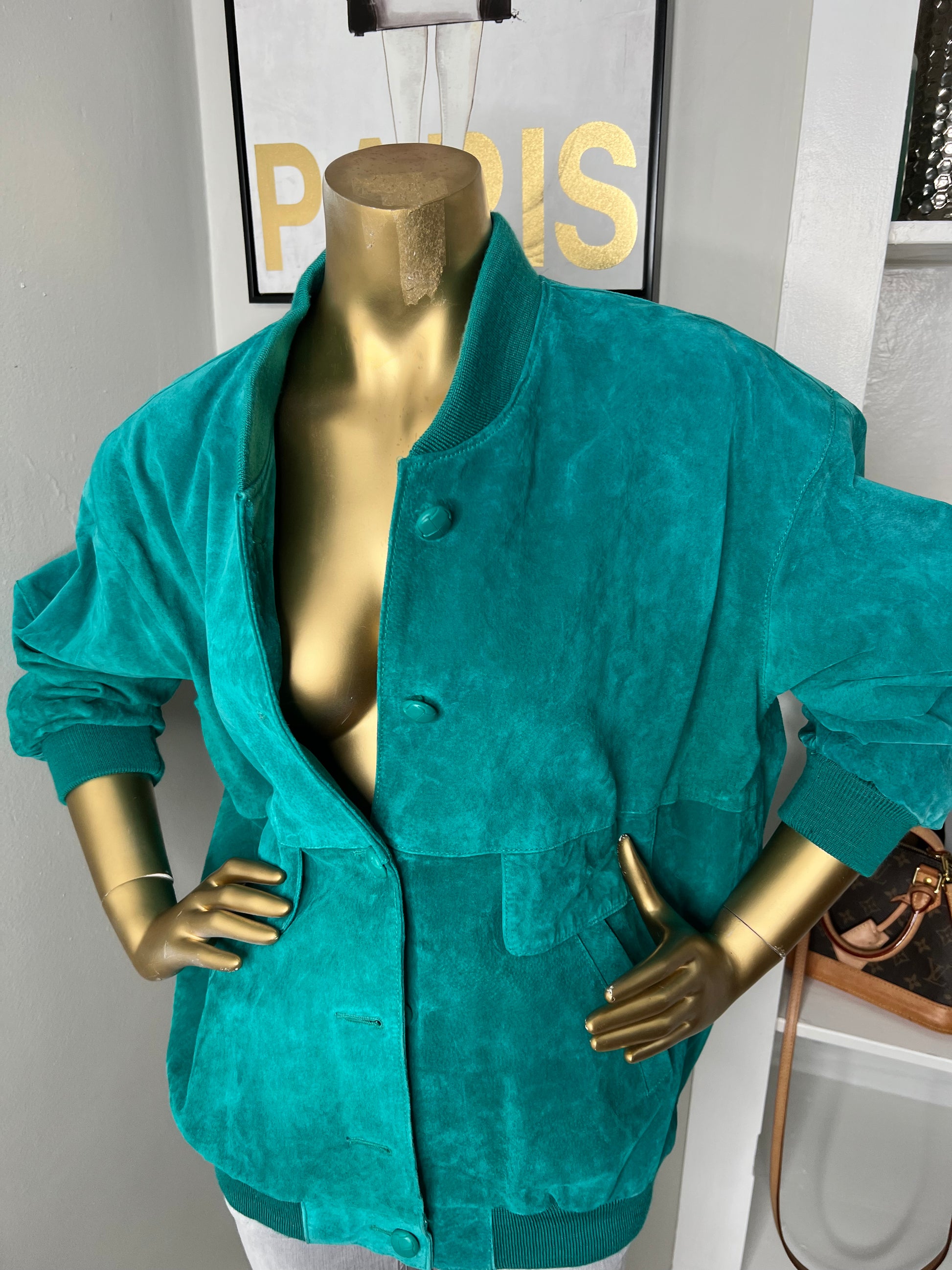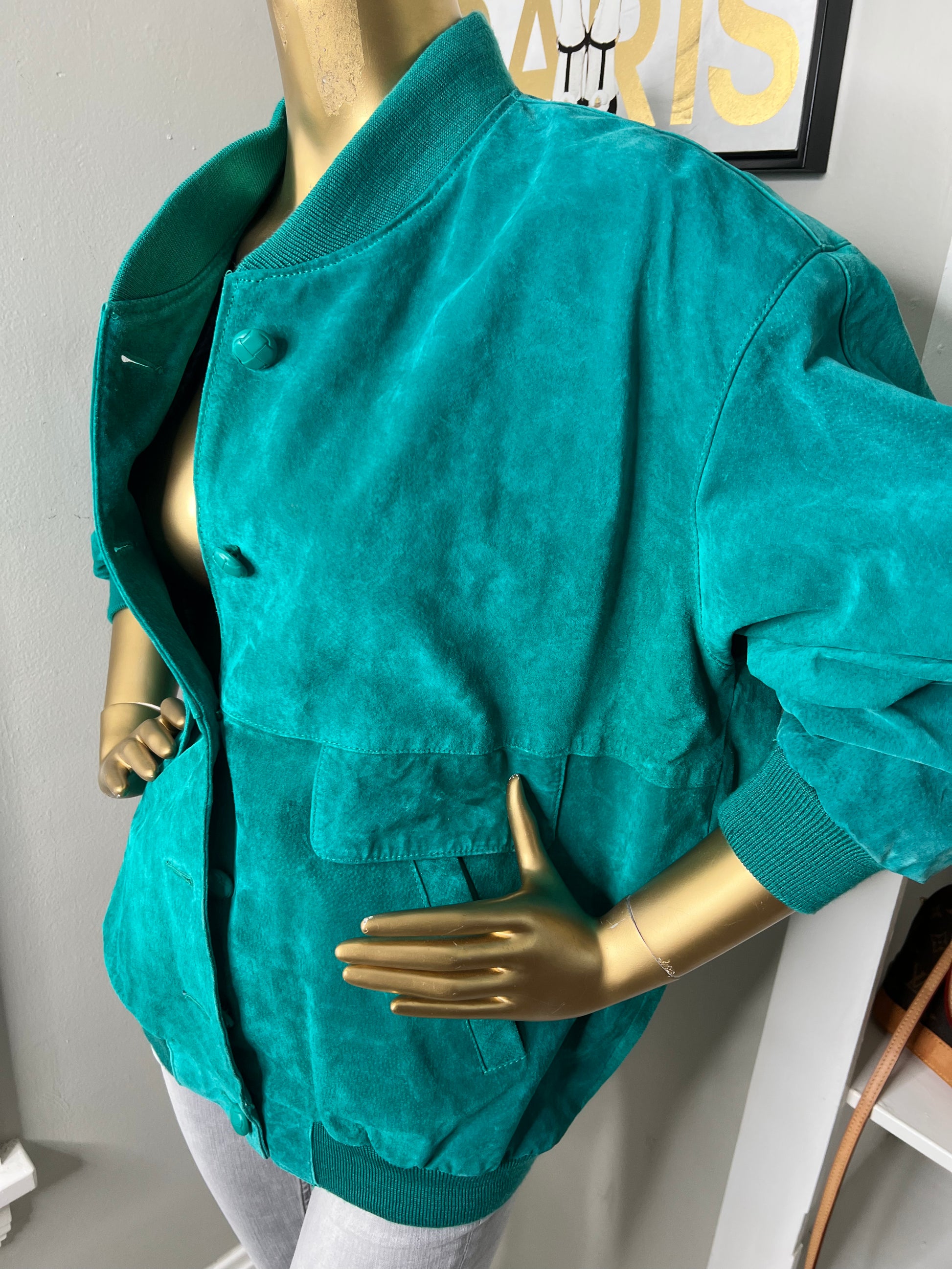 Vintage Pelle New York Milano Bomber Genuine Leather Jacket Teal Green tagged medium fits up to A large